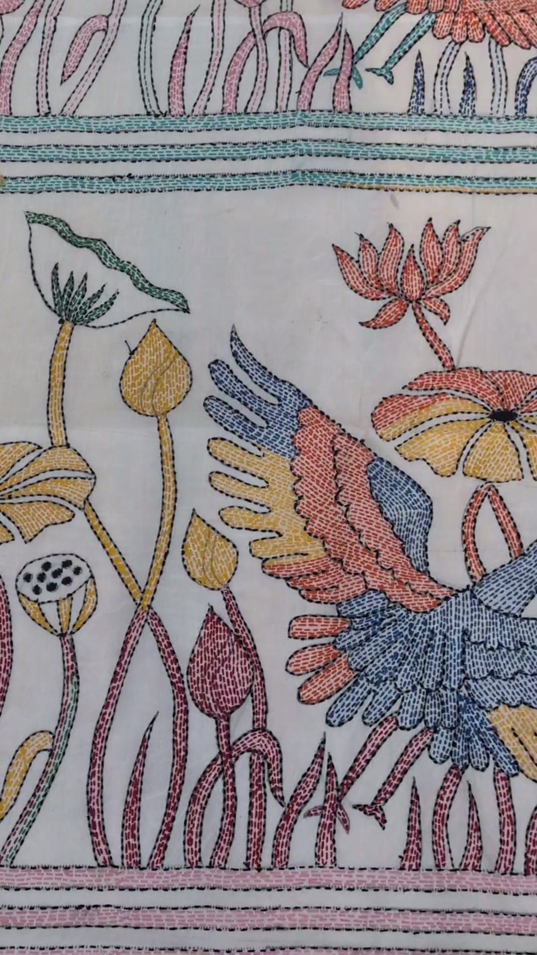 Swan kantha hand stitch saree
